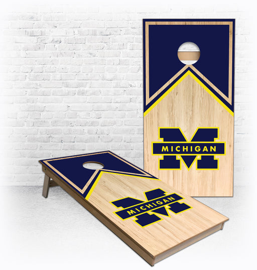 View full detailsMichigan Maize and Blue short Triangle theme Cornhole Board set