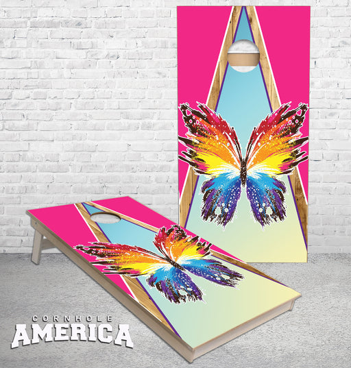 View full detailsButterfly on Pink Triangle themed Cornhole Boards