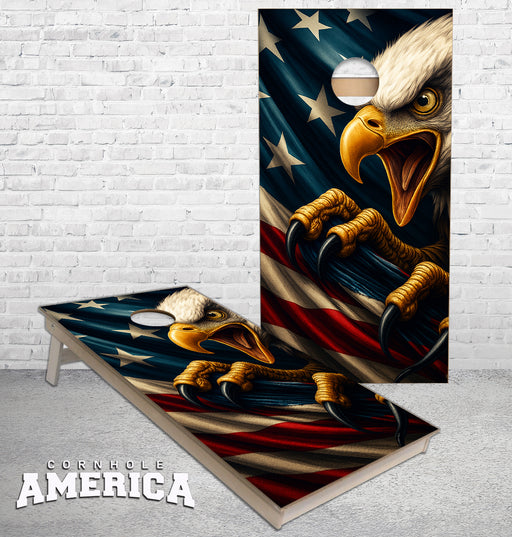 View full detailsScreaming Eagle Clawing US Flag cornhole boards