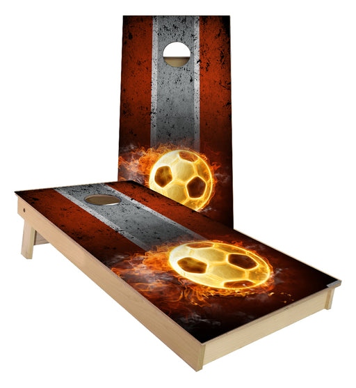 View full detailsFlaming Soccer Ball traditional stripes Cornhole Boards