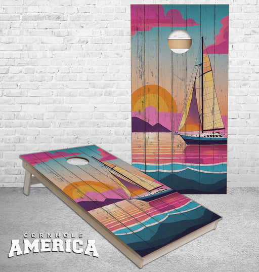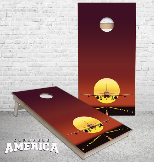 View full detailsAirliner Landing in front of a sunset sky cornhole boards