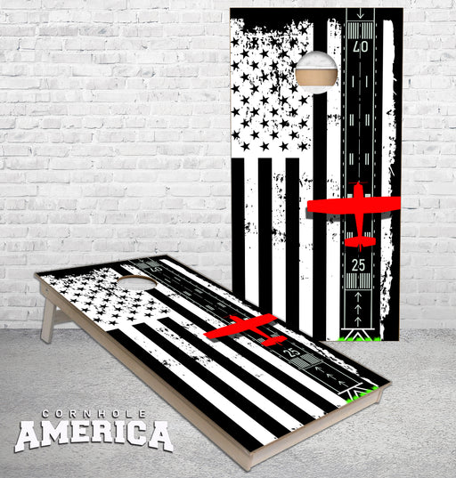 View full detailsUS Flag Cessna taking off on a runway cornhole boards
