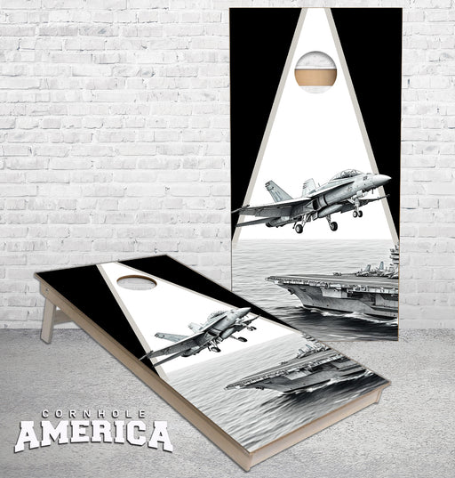 View full detailsF-18 Fighter jet aircraft carrier triangle theme cornhole boards