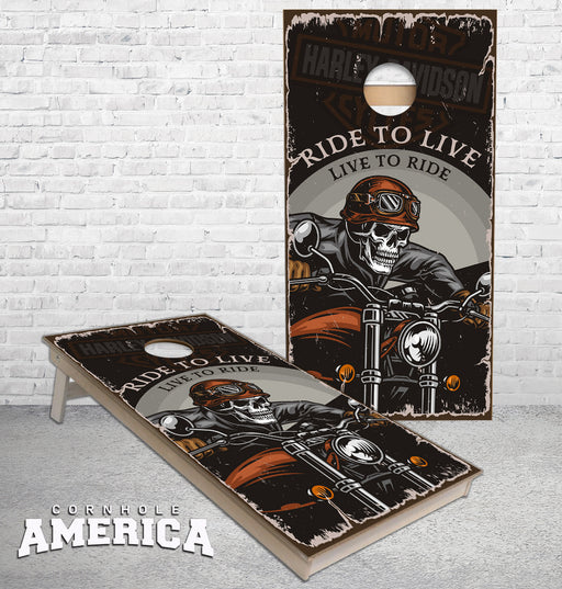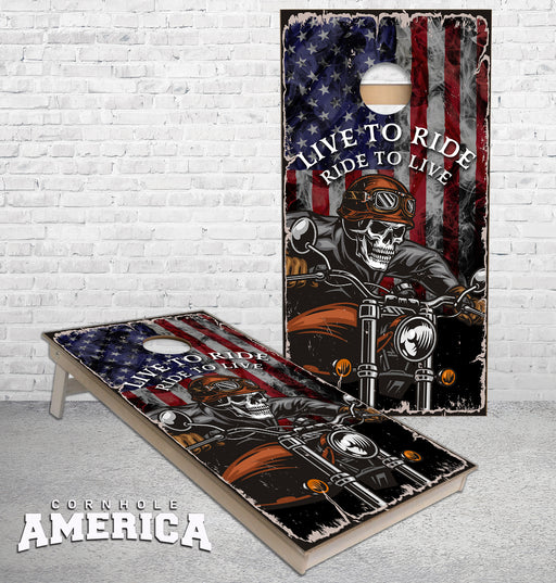 View full detailsRide to Live, Live to Ride US Flag cornhole boards