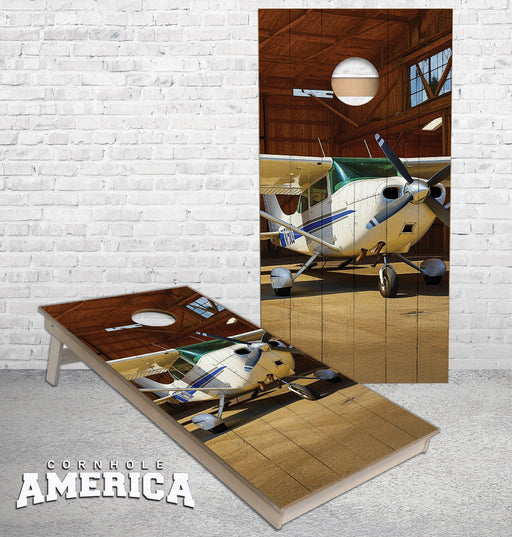 View full detailsCessna Airplane in a wooden hangar cornhole boards