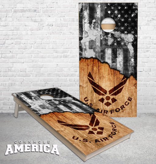 View full detailsJagged US Flag with United States Air force Emblem cornhole boards