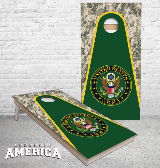 View full detailsUS Army Logo on Triangle theme cornhole boards
