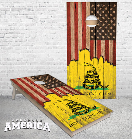 View full detailsJagged US Flag Don't Tread On Me cornhole boards