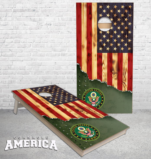 View full detailsArmy Burnt US Flag torn Metal cornhole boards