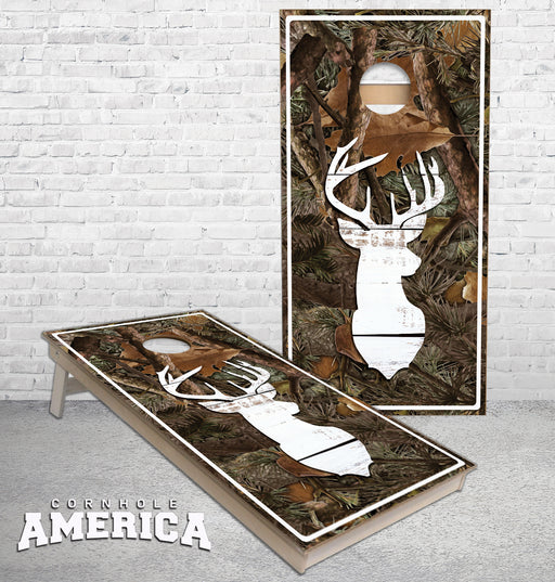 View full detailsLeafy camo with Rustic Wood Buck Deer Cornhole boards