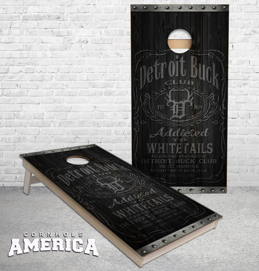 View full detailsDetroit Buck Club Jack Daniels theme cornhole boards