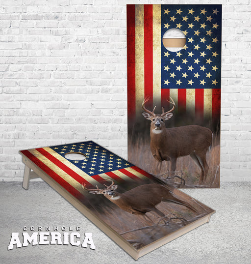 View full detailsWhitetail Buck Grunge US Flag cornhole boards