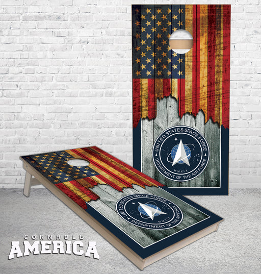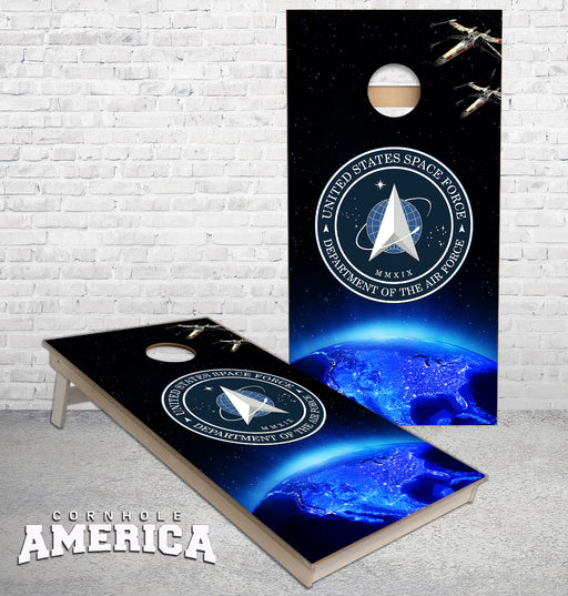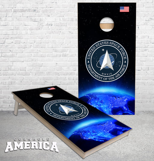 View full detailsUnited States Space Force overlooking earth cornhole boards