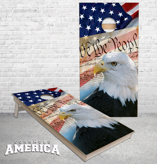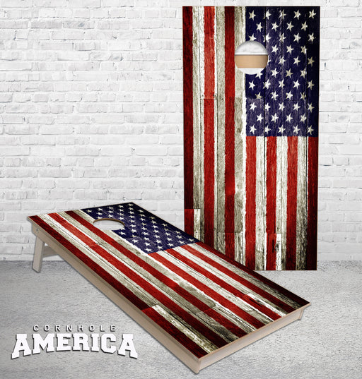 View full detailsUS Flag on Stained Rustic wood look cornhole boards