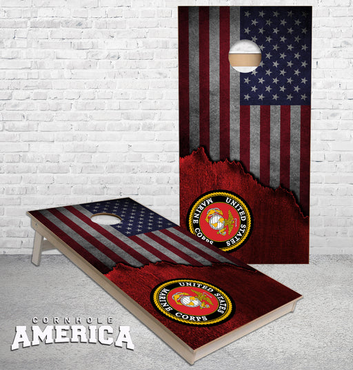 View full detailsUS Flag Jagged Edge Marines Logo Cornhole Boards