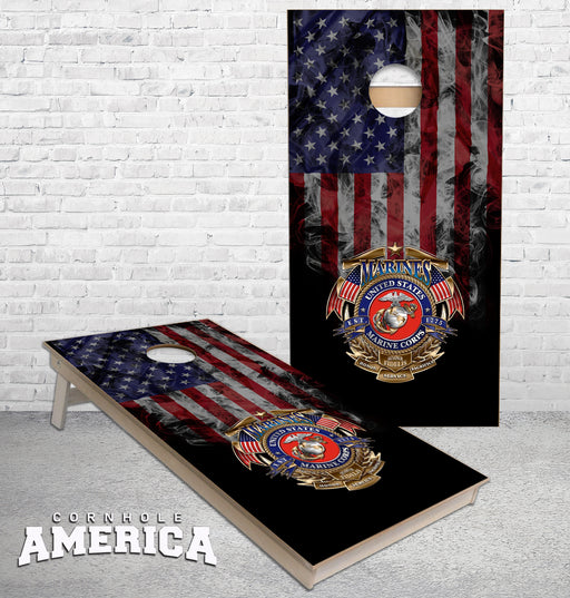 View full detailsUS Marines emblem on smokey United States flag cornhole boards