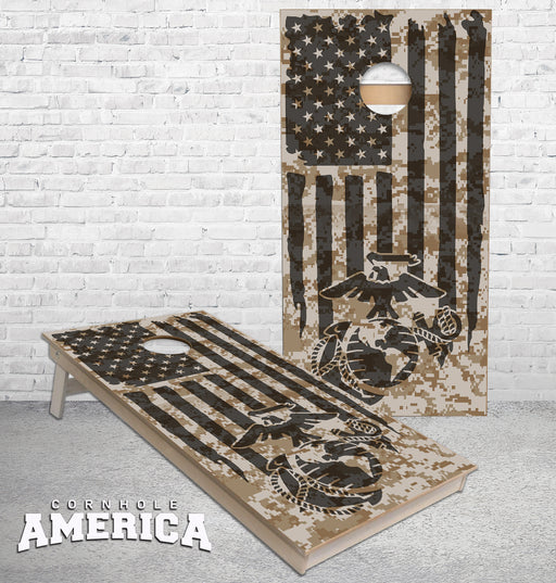 View full detailsUS Marine logo on Camo American Flag cornhole boards