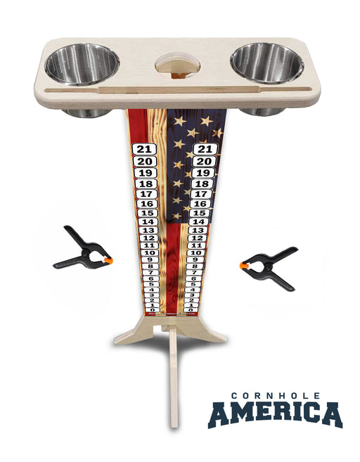 Cornhole AmericaBurnt US Flag – Dual-Sided Print Upgrade your game setup with a Custom Printed Score Stand, made from premium 18mm (3/4") Baltic Birch plywood ...