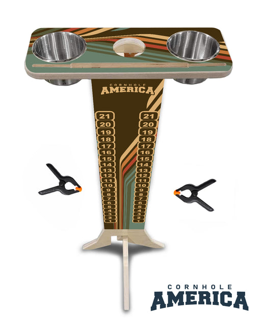 Cornhole America70's Retro – Dual-Sided Print Wooden Score Tower Upgrade your game setup with a Custom Printed Score Stand, made from premium 18mm (3/4") Baltic B...