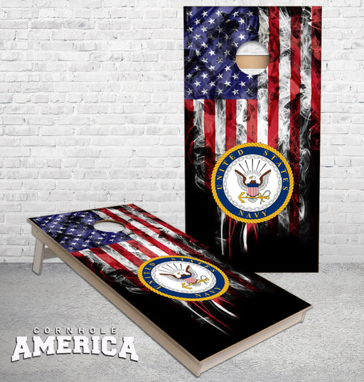 View full detailsUS Navy with smokey US Flag cornhole boards