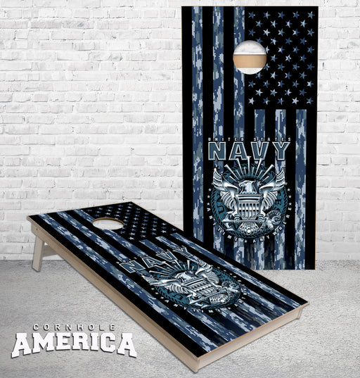 View full detailsUS Navy Camo Flag with logo cornhole boards