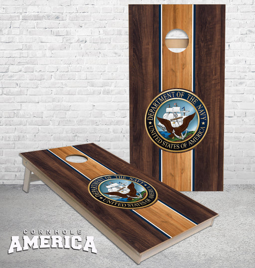 View full detailsUS Navy Emblem on Wooden striped theme cornhole boards