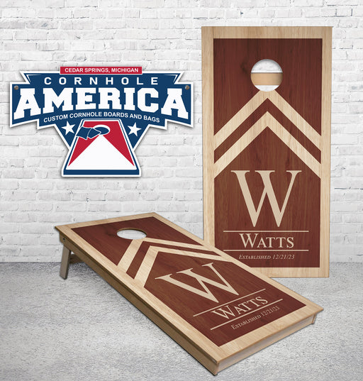 View full detailsCustom Wedding Dark and Light triangles cornhole boards