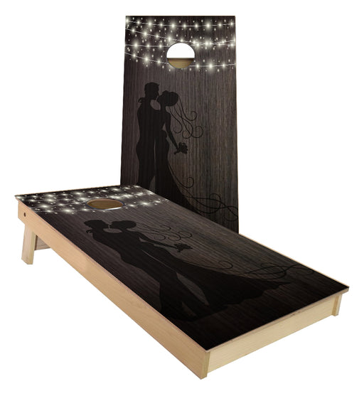 View full detailsHusband and Wife Silhoutte string lights cornhole boards