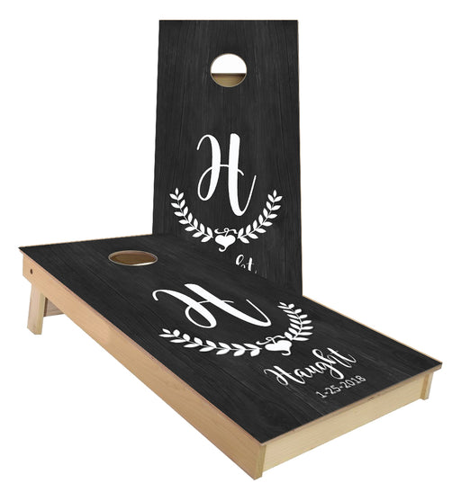 View full detailsMonogram leaf heart with Name and Date Wedding cornhole boards